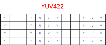 • 4:2:2,如果Y的数据量是8,那U的数据量就是4,V的数据量也是4,平均一个像素占2个字节。